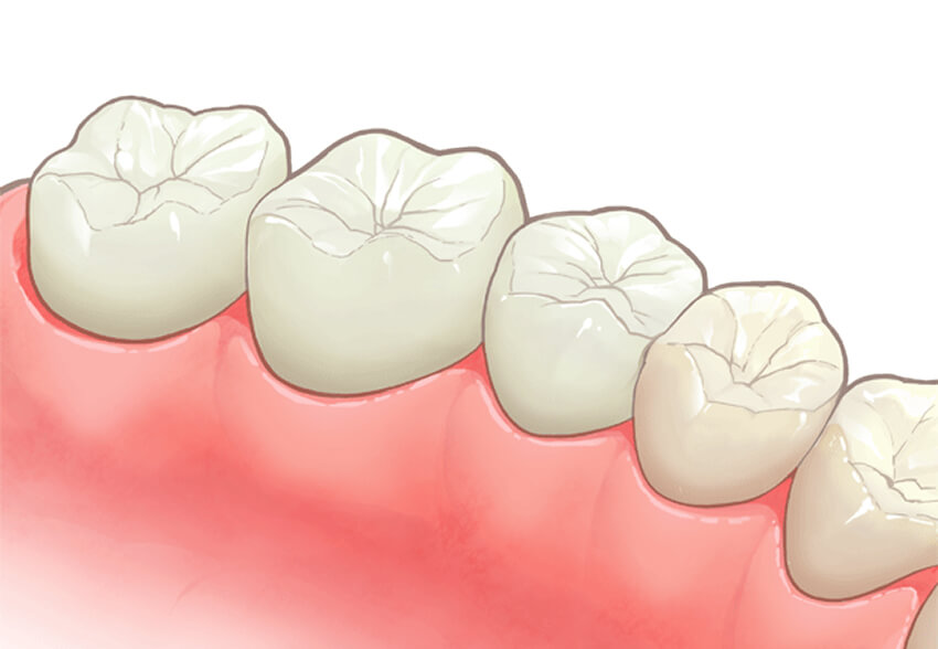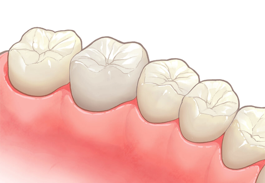 セラミック素材のみで作られた被せ物(クラウン)です。詰め物よりも削った部分が大きい場合に、被せるように装着します。審美性が高く、金属アレルギーの心配もありません。