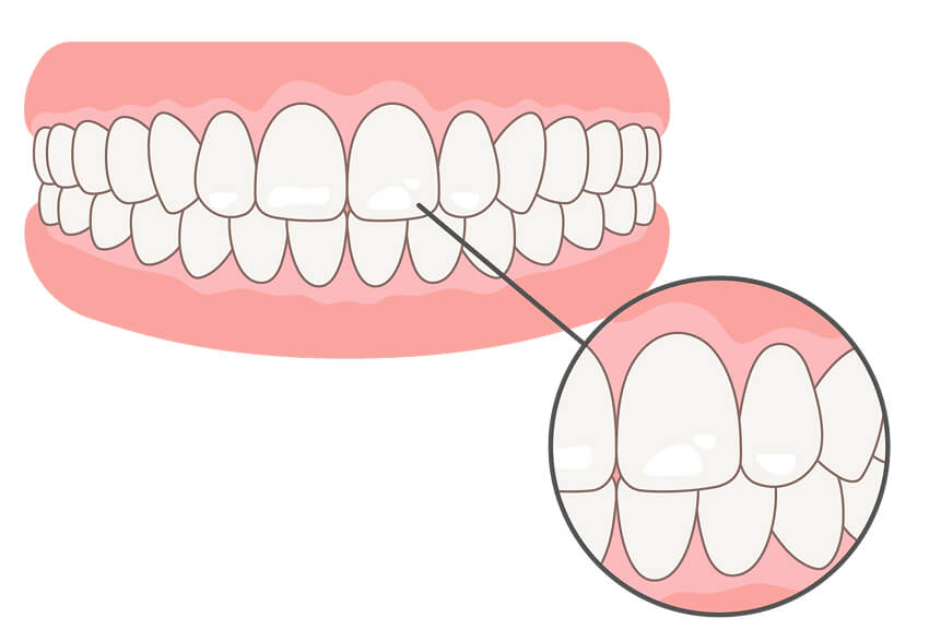 歯の一部が白く濁っている場合、初期むし歯または、エナメル質形成不全の可能性があります。どちらも歯の表面に白斑(はくはん)が認められ、総称して「ホワイトスポット」と呼ばれています。