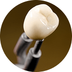 自然な見た目のセラミックの内側に、ジルコニアを貼りつけた被せ物(クラウン)です。2つの素材を合わせるので、自然な見た目を保ちつつ、強度と耐久性がアップして硬いものもしっかりと噛めます。