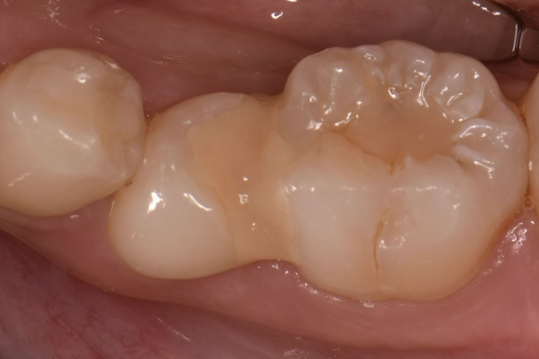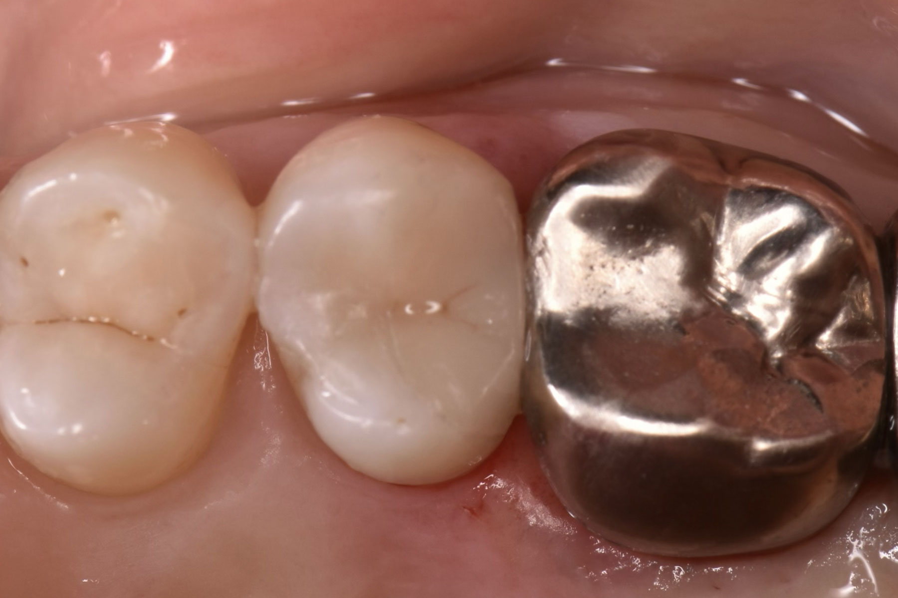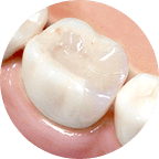 セラミック素材のみで作られた被せ物(クラウン)です。詰め物よりも削った部分が大きい場合に、被せるように装着します。審美性が高く、金属アレルギーの心配もありません。