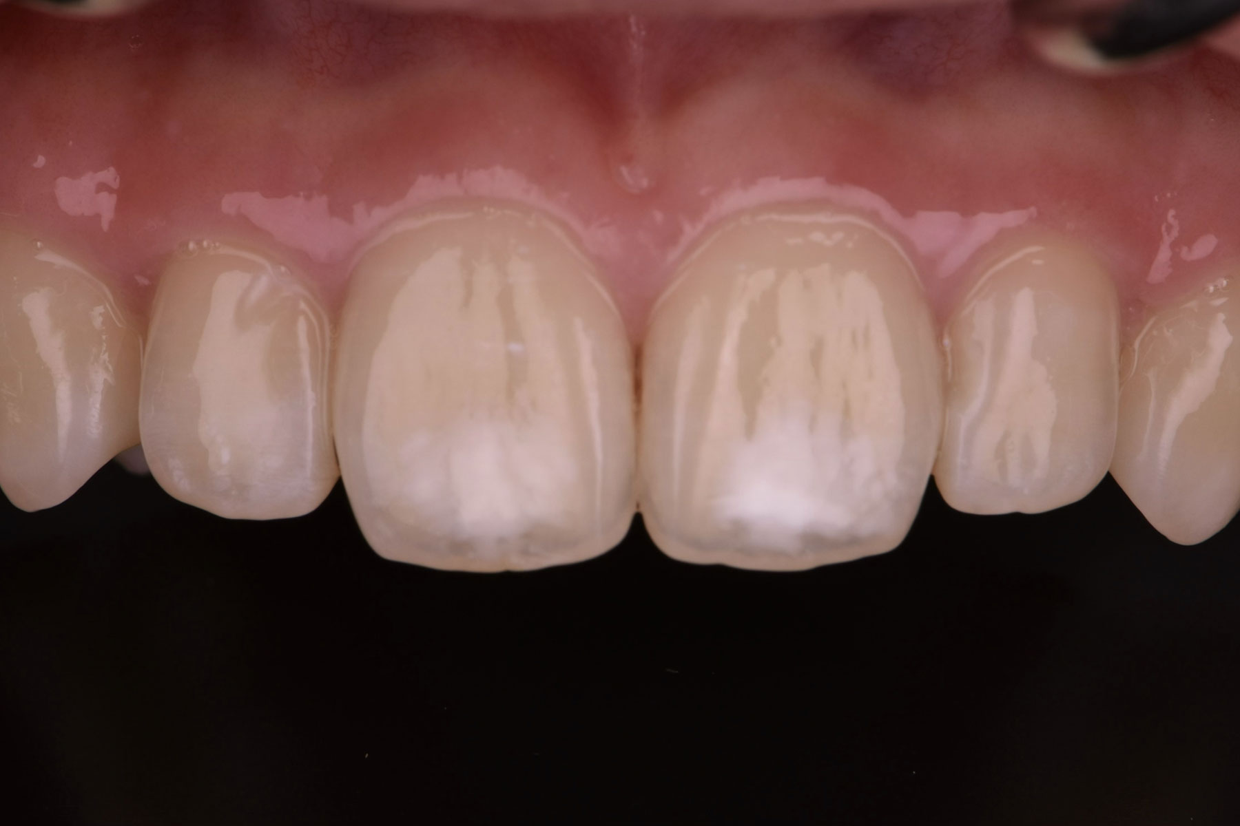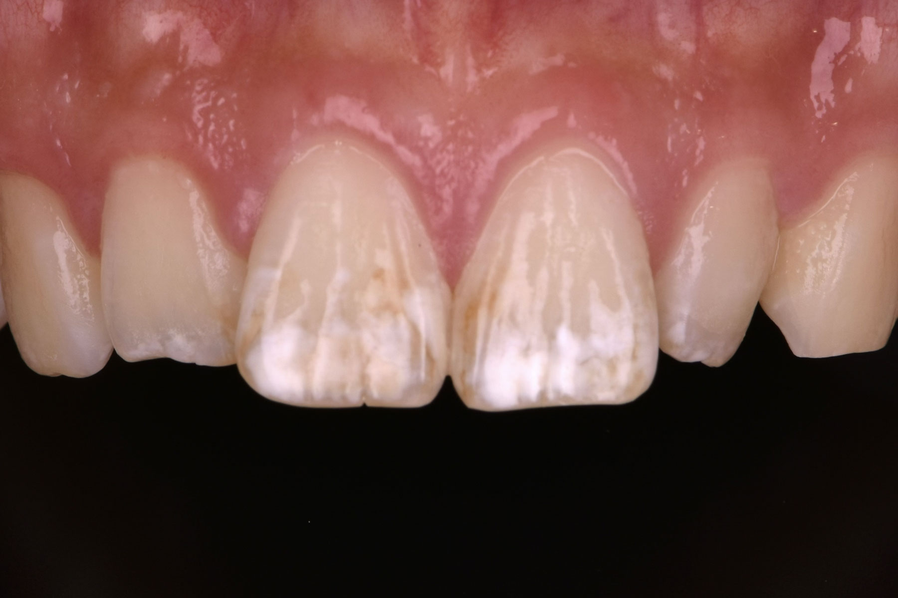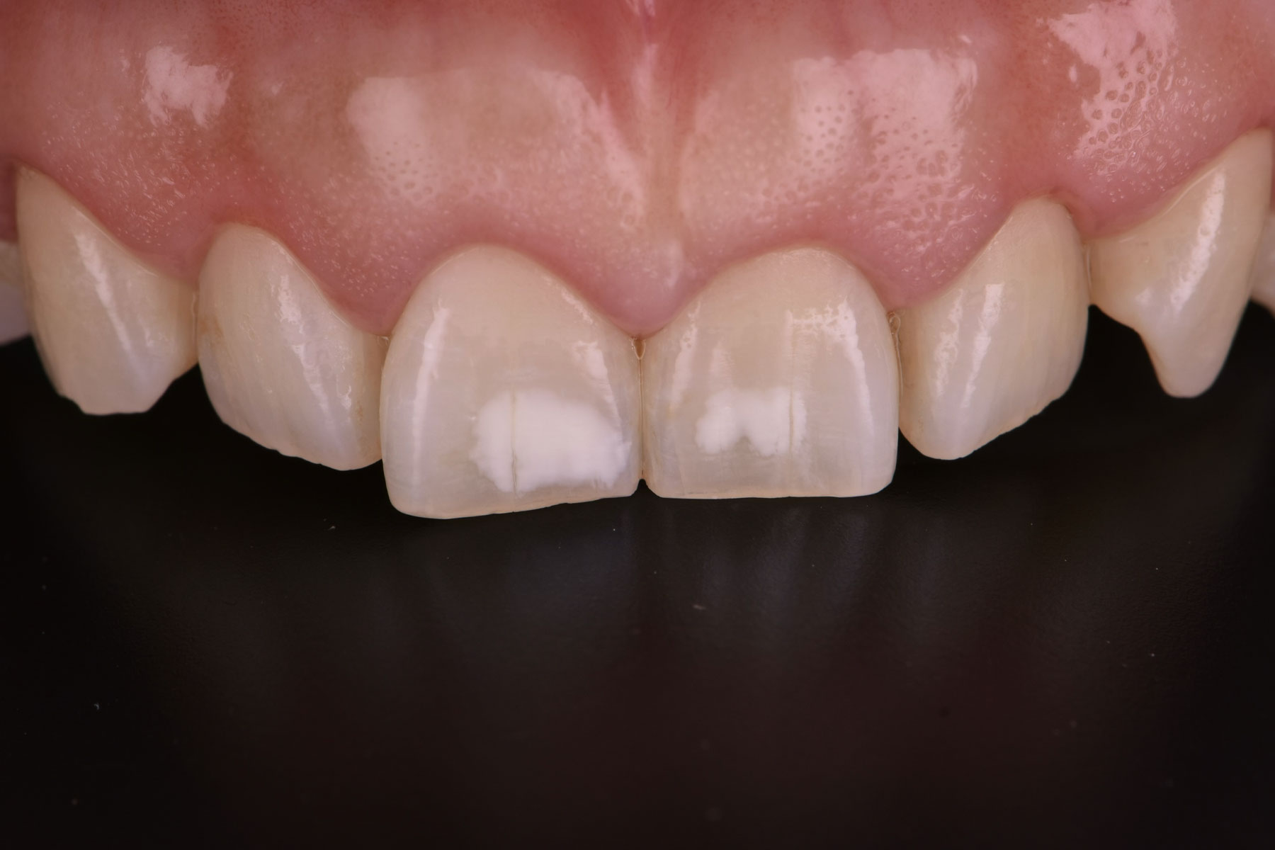 歯の一部が白く濁っている場合、初期むし歯または、エナメル質形成不全の可能性があります。どちらも歯の表面に白斑(はくはん)が認められ、総称して「ホワイトスポット」と呼ばれています。