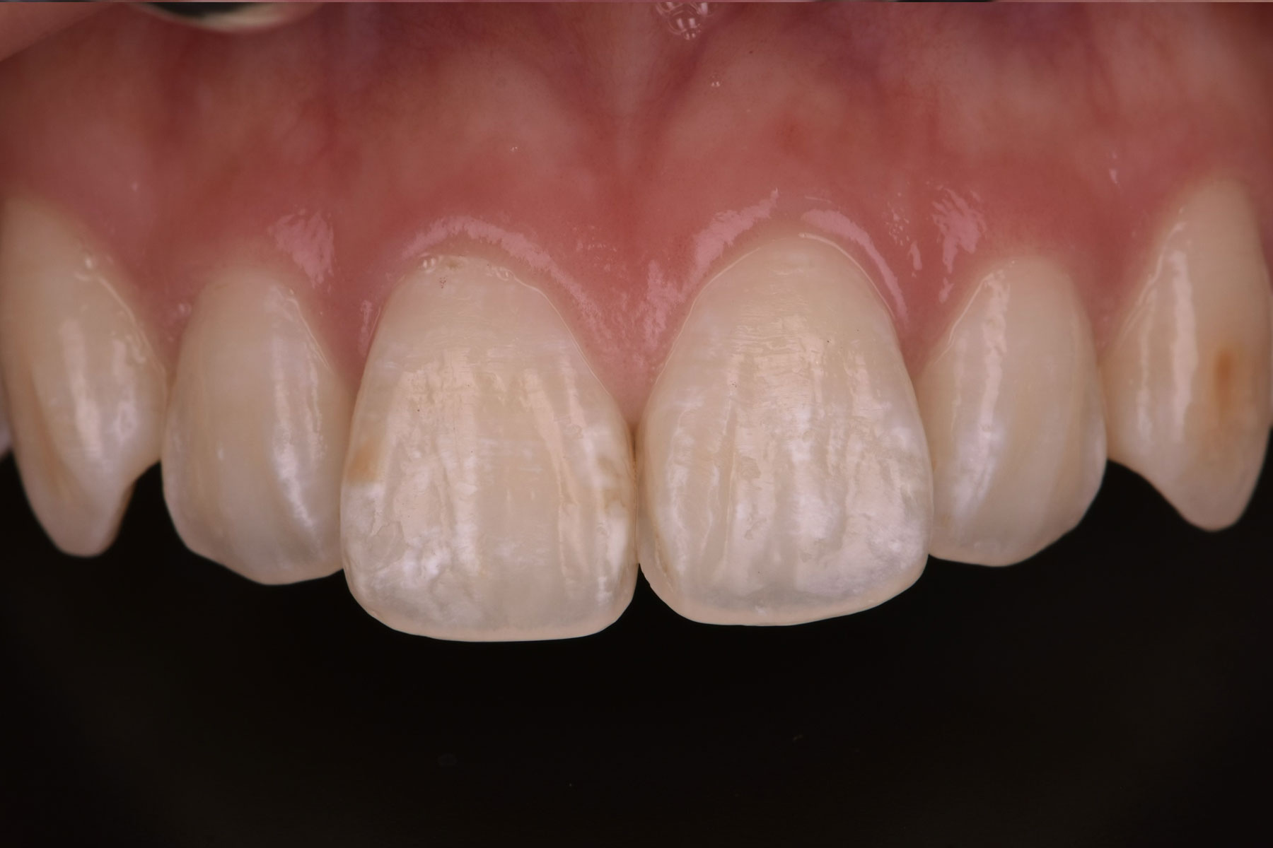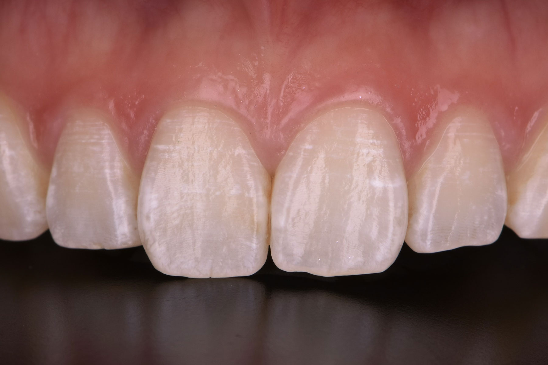 初期むし歯は、むし歯菌によって歯の表面組織であるエナメル質が溶かされた状態です。エナメル質形成不全は、乳幼児期におけるフッ素の過剰摂取や遺伝、環境などさまざまな要因によってエナメル質が正常に形成されていない状態を指します。