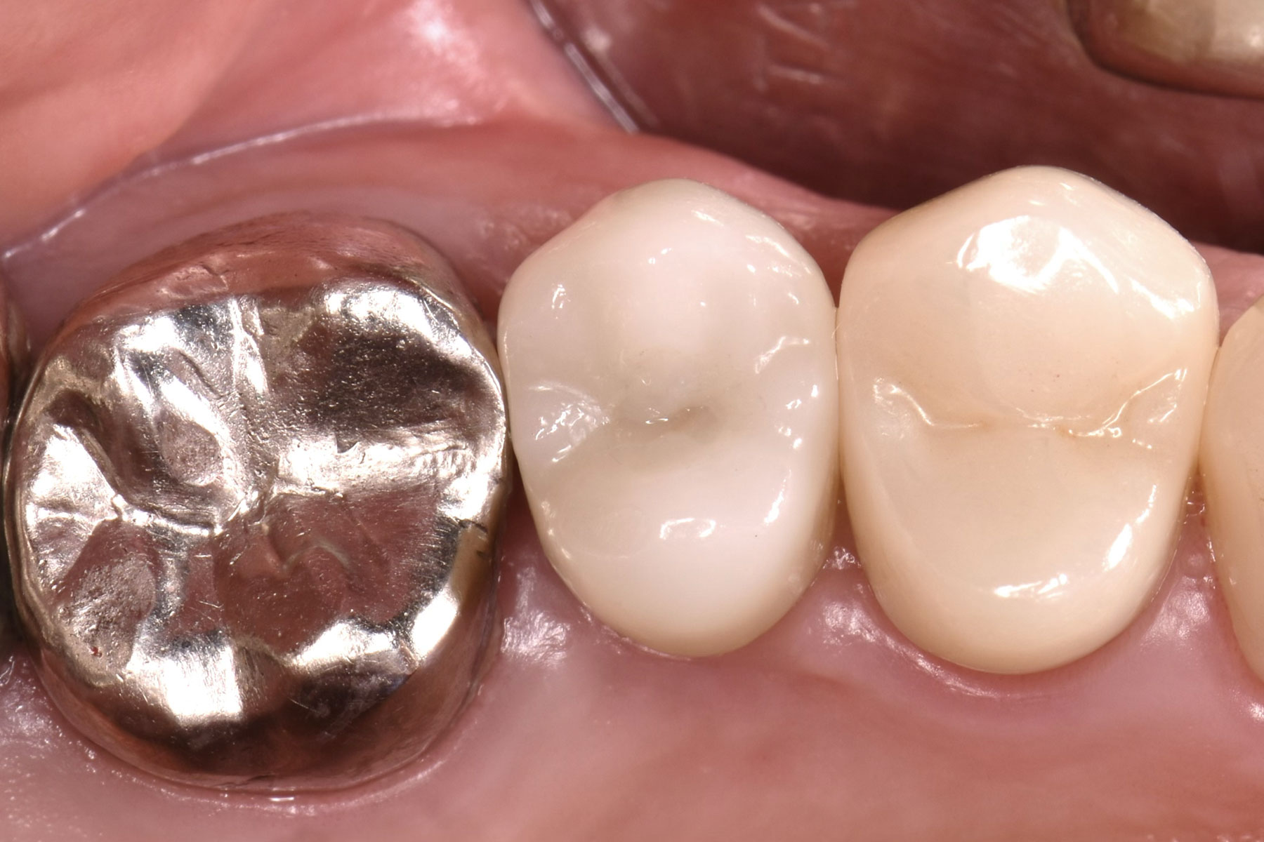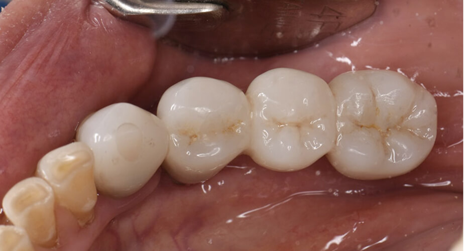 当院では、基本的にセラミック(e-max、ジルコニア)で製作しています。装着後、問題なければメンテナンスに移ります。