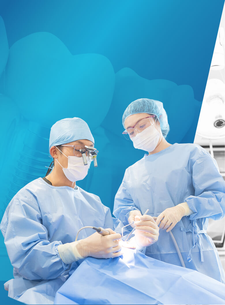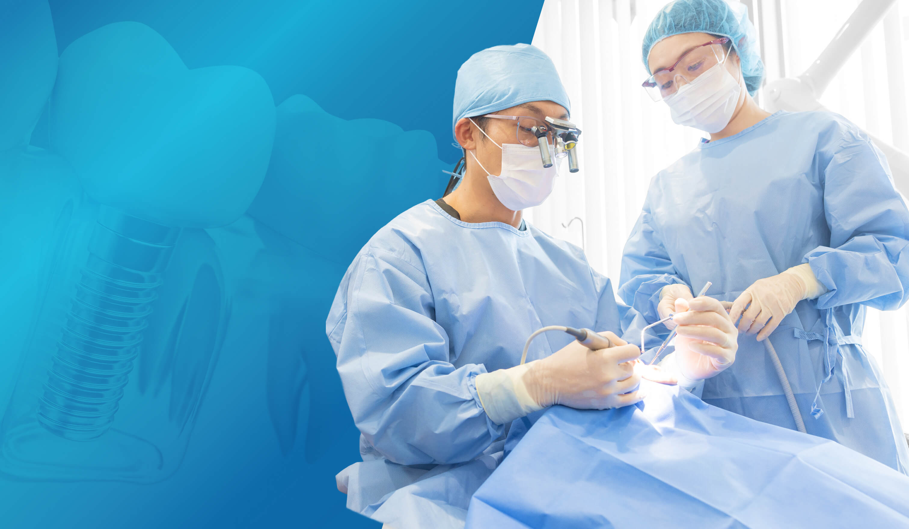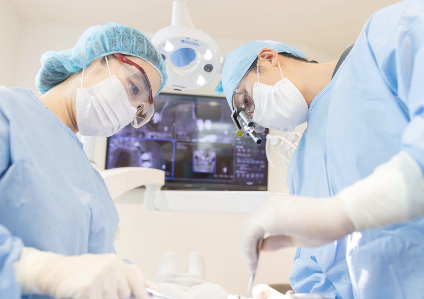衛生管理を徹底した部屋で手術を行います。インプラントの安定性を確認して、可能な場合はこの日に仮歯を装着します。