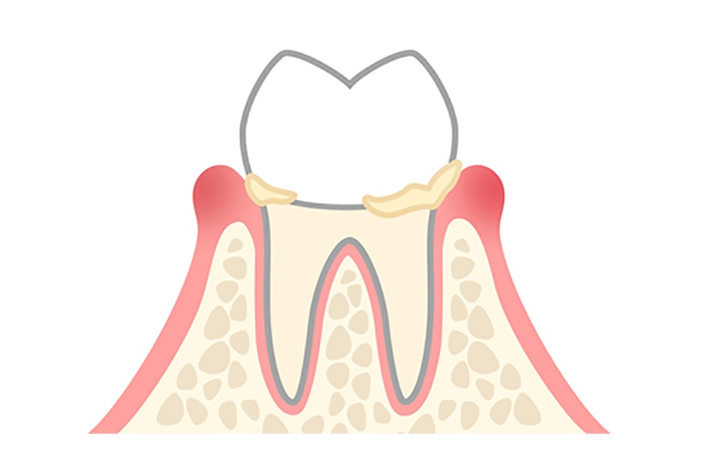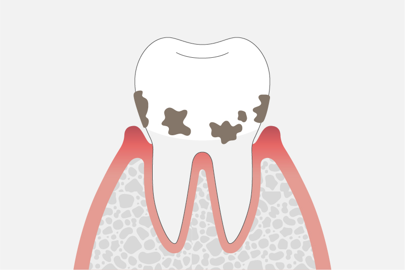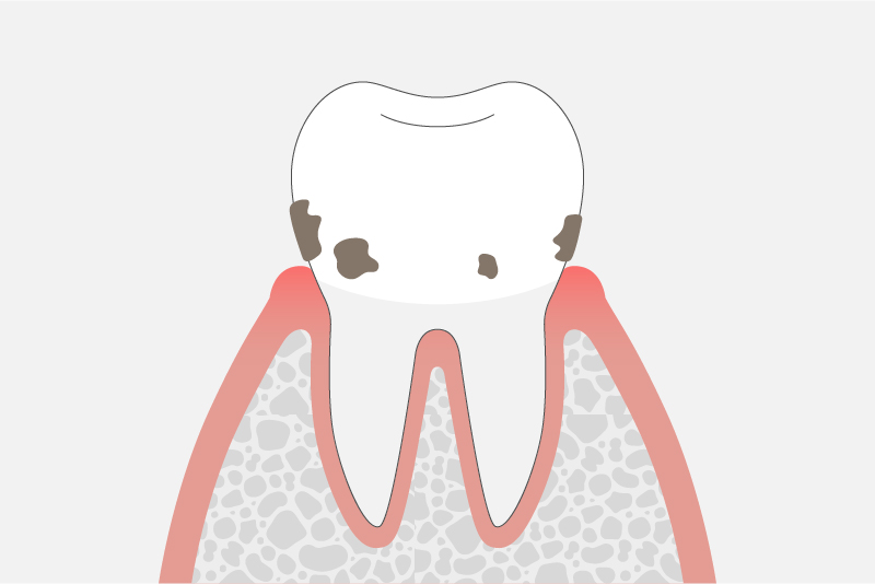 歯ぐきの部分に炎症が起こります。骨にはまだ影響がありません。