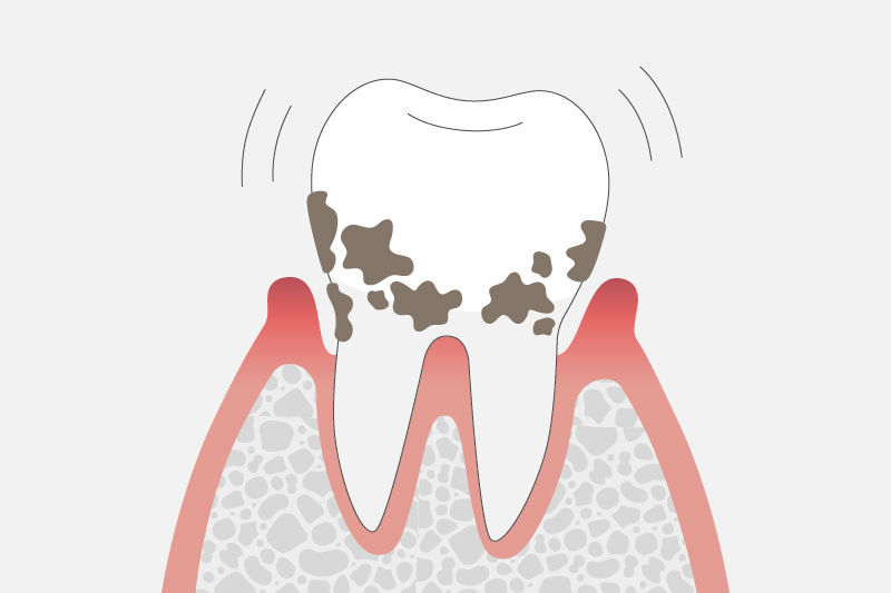 歯肉炎からさらに進行して、歯を支える骨にも炎症が起こります。