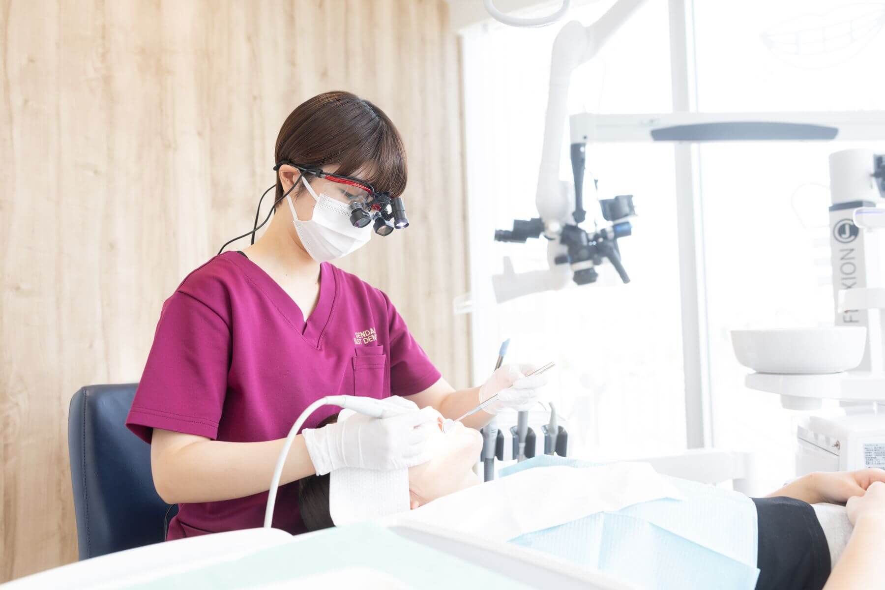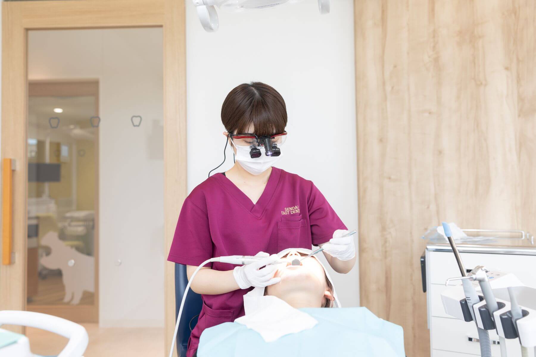 歯科衛生士がプロの技術で歯石や歯の着色汚れを除去し、毎日のセルフケアを正しく行えるように指導させていただきます。