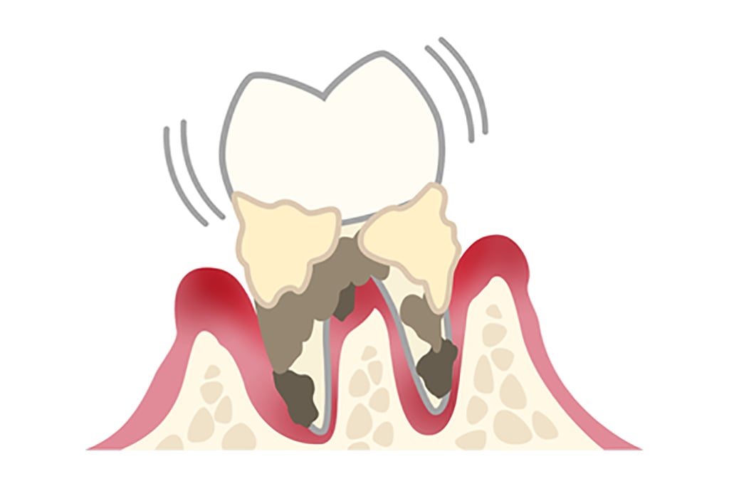 歯根の約3分の2の深さまで炎症が広がり、歯周組織が深刻なダメージを受けます。