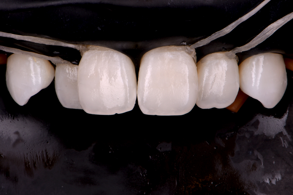 装着する歯や歯ぐきと調和するように細かく色味を調整し、形も精巧に作り上げます。